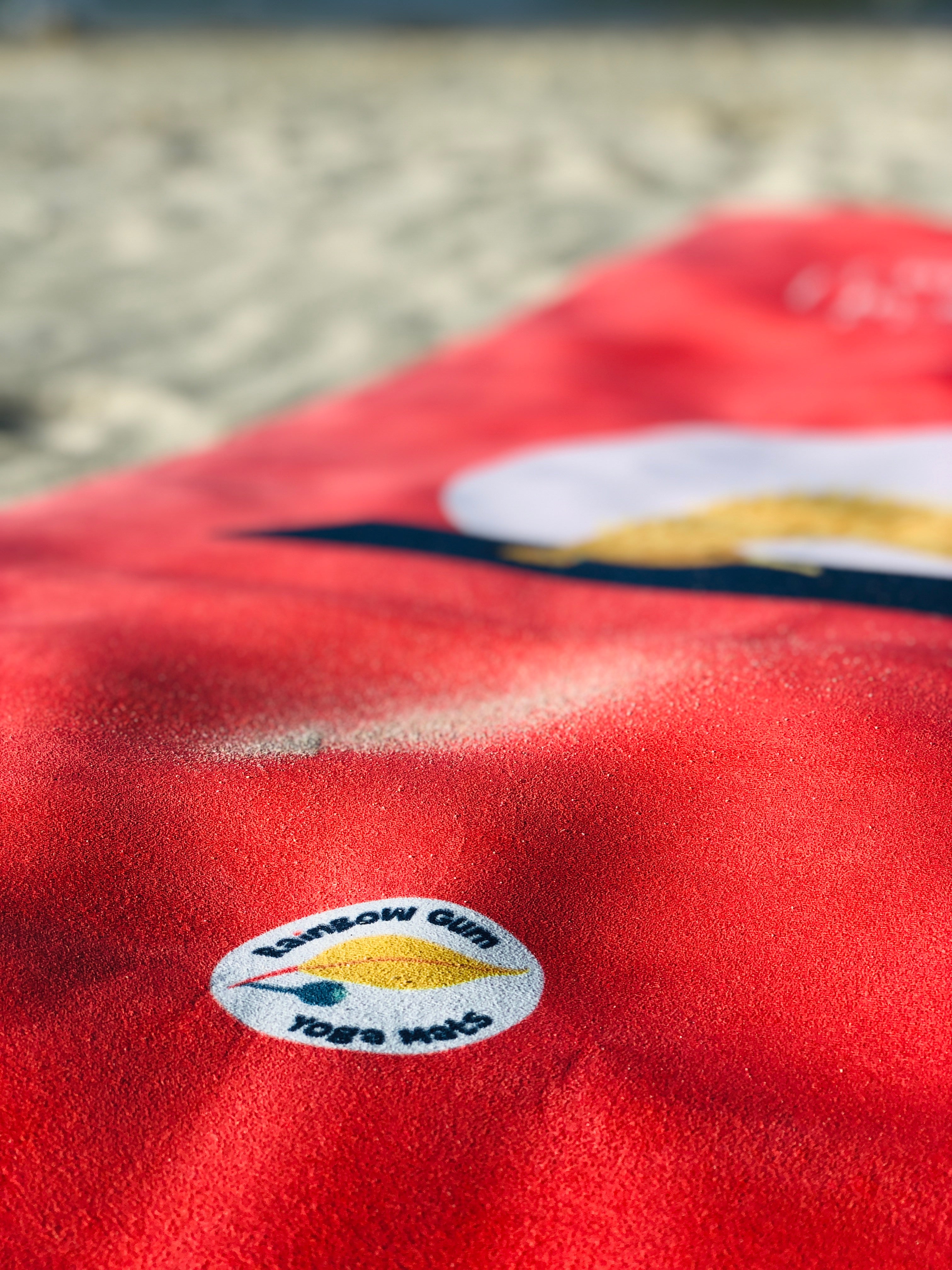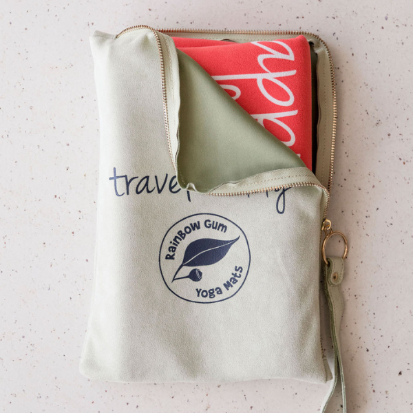 Rainbow Gum Travel Yoga Mats are made of eco-friendly specially coated antibacterial microsuede with a 1.5mm natural rubber base to provide extra grip, on any surface.