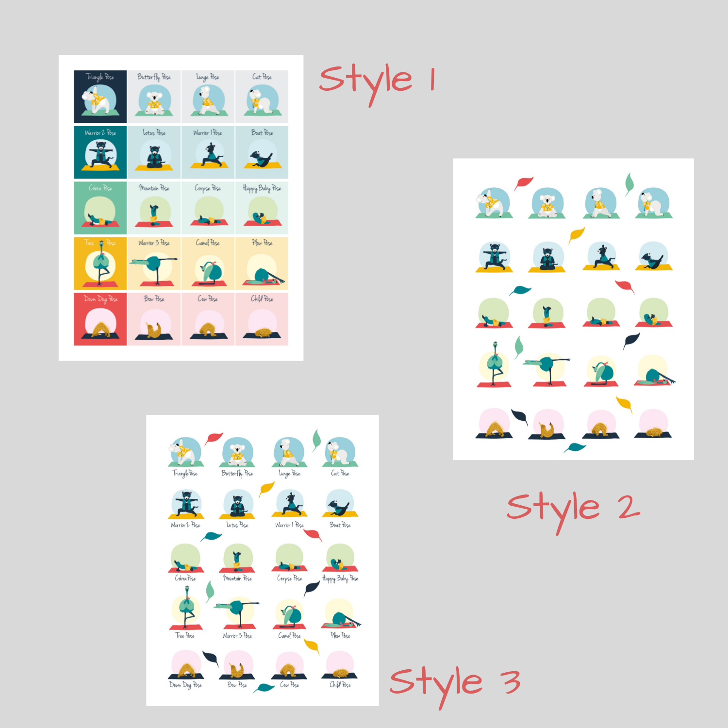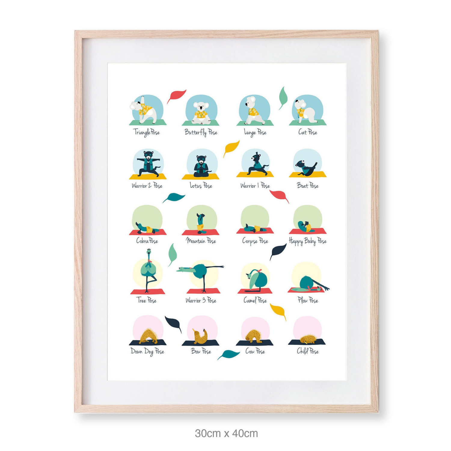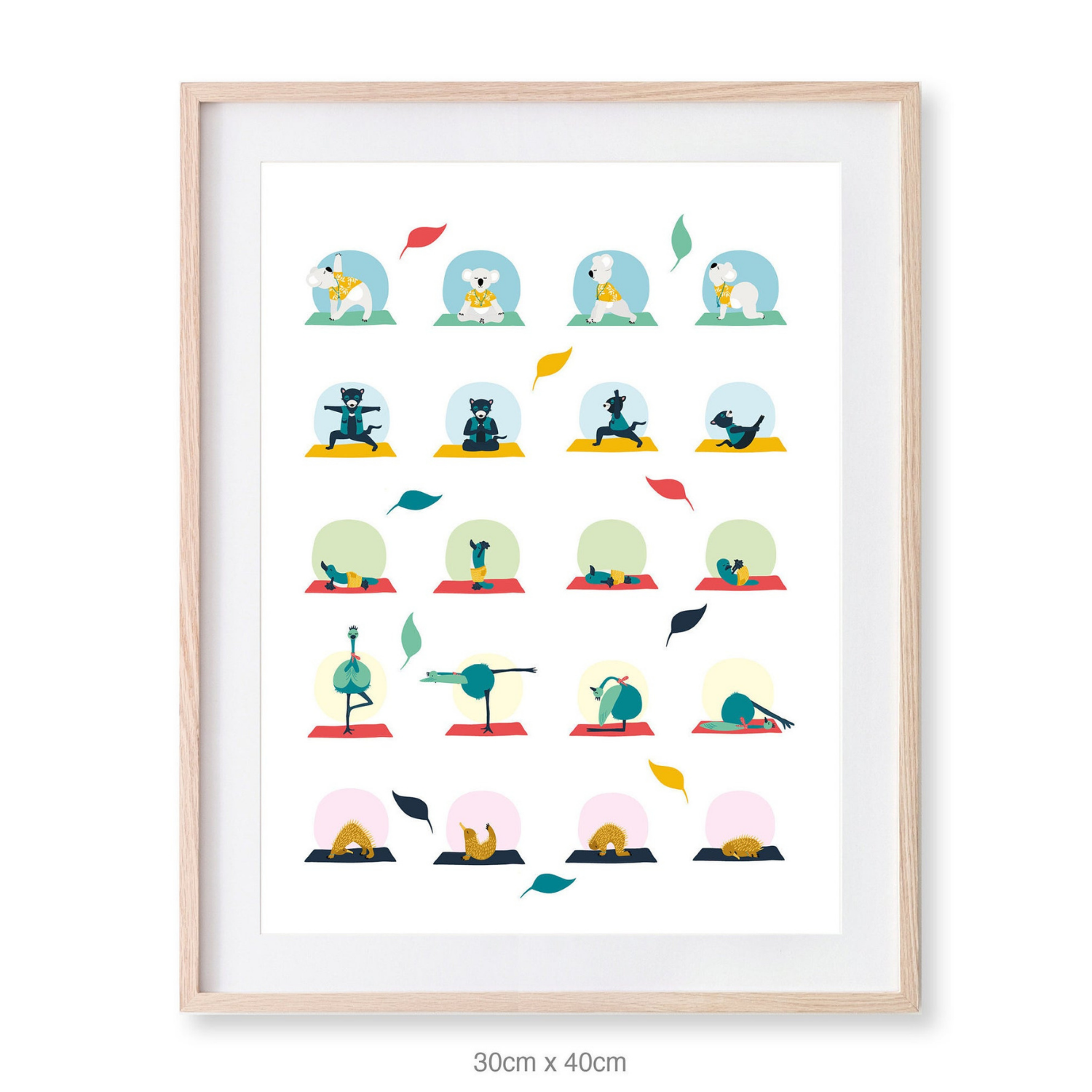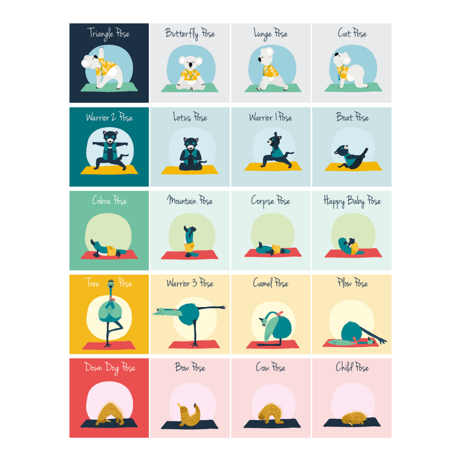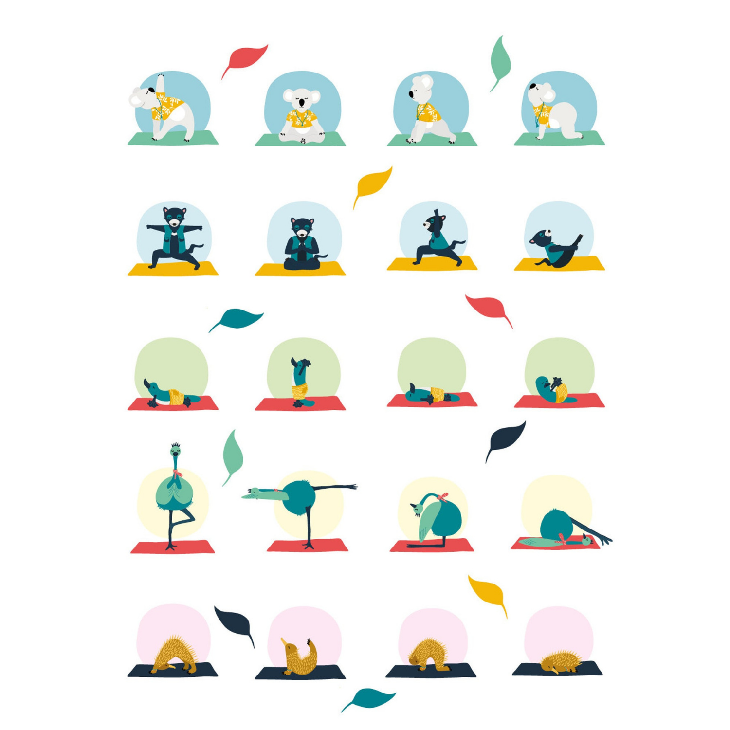 Get your mat out and start having fun with those beautiful prints featuring our Aussie characters practicing their favourite yoga poses. 20 yoga poses in total by our koala, emu, platypus, Tassie devil and echidna. Those prints are perfect for home, school or yoga classes.