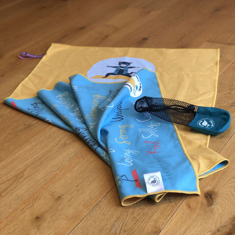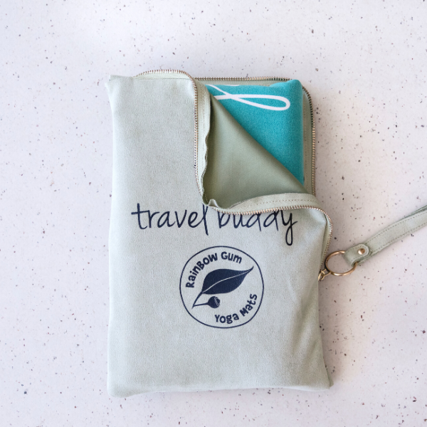 Rainbow Gum Travel Yoga Mats are made of eco-friendly specially coated antibacterial microsuede with a 1.5mm natural rubber base to provide extra grip, on any surface.