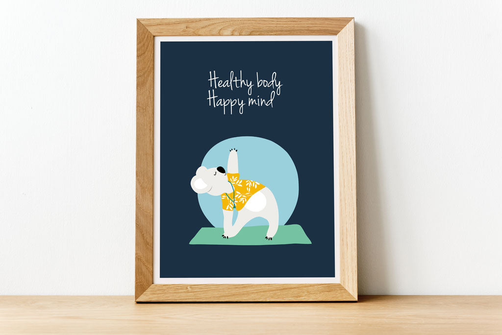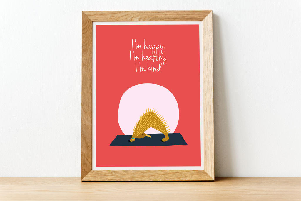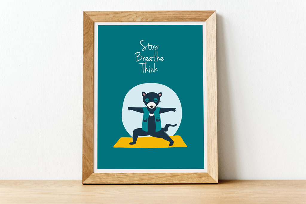 Choose your favourite Rainbow Gum character practising their favourite yoga pose and repeating their favourite mantra. This print is perfect for home, school or yoga classes.