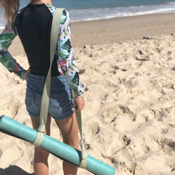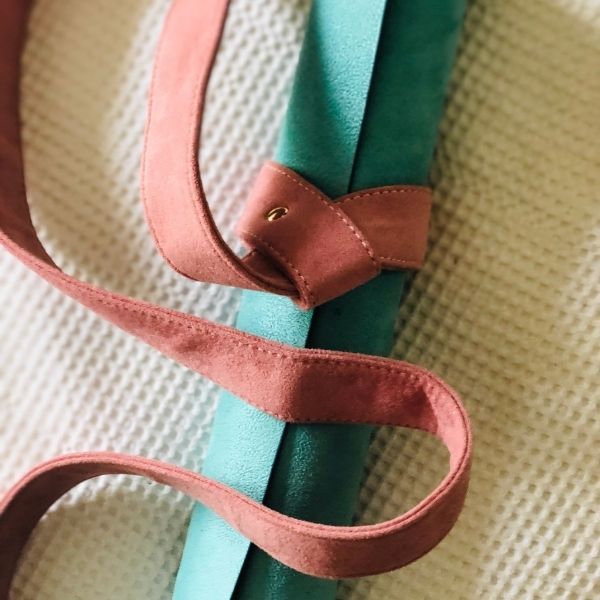 The soft yet sturdy micro-suede harness is easy to use and allows you to swing your yoga mat over your shoulder or carry it crossbody.